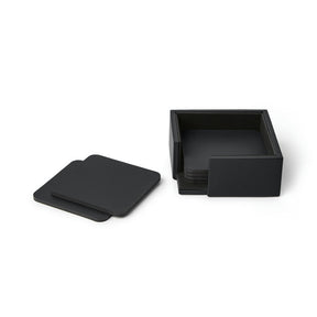 Set of 6 square coasters made of bonded leather.