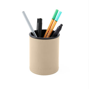 Portapenne rotondo in cuoio rigenerato.